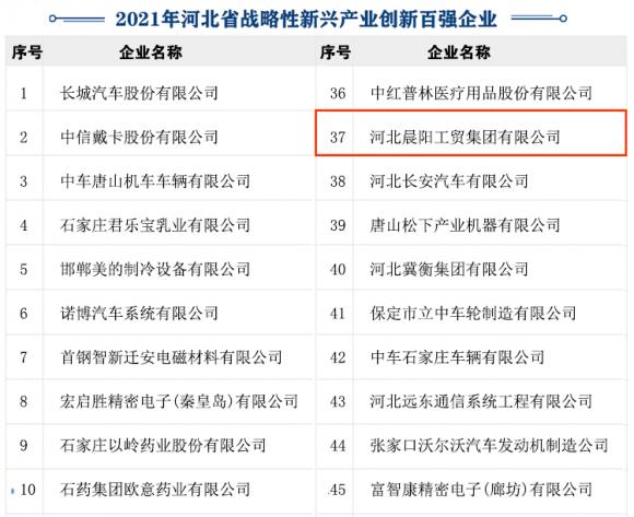 河北晨陽工貿(mào)集團榮膺“2021年河北省戰(zhàn)略性新興產(chǎn)業(yè)創(chuàng)新企業(yè)百強”
