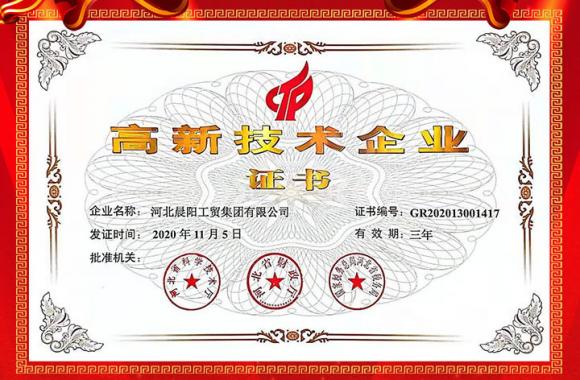 河北晨陽工貿(mào)集團再次榮獲“高新技術(shù)企業(yè)”認證